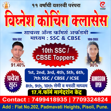 At Vighnesh Coaching Classes, we guide students from 8th to 10th grade in Undri, Pune, helping them master concepts and excel in exams.